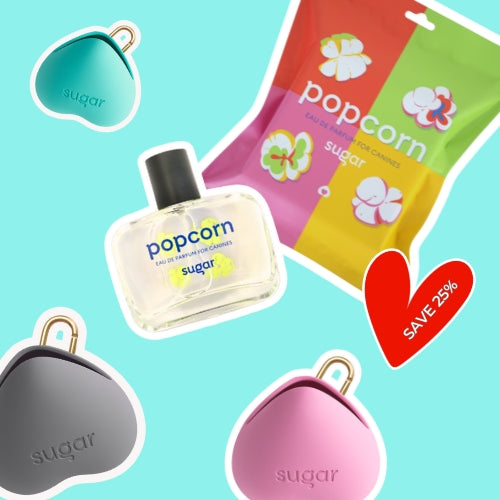 POPCORN PERFUME. Love this fresh smell! With a wool coat my wet pooch can take a while to dry and this fragrance hides the sheepie wet wool smell very well!